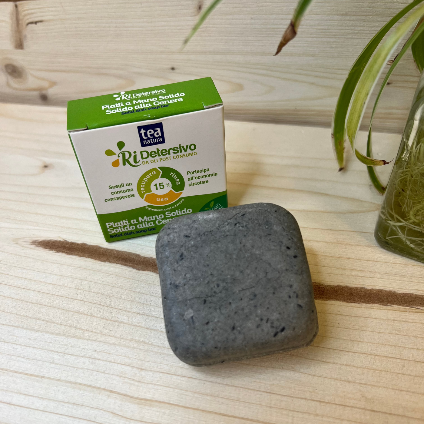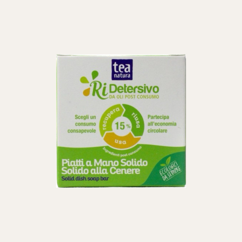 Tea Ri-Detersivo Piatti a mano SOLIDO è un prodotto che sposa l’ECONOMIA CIRCOLARE. Tra gli ingredienti è presente il 15% di materie prime di seconda vita: il sapone da Oli Post-Consumo e la Cenere di legna, tradizionalmente usata nel lavaggio. Ogni altro ingrediente deriva da materie prime vegetali, ottenute da fonti rinnovabili e svolge al meglio la propria funzione sgrassante ed igienizzante nel pieno rispetto dell'ambiente che ci circonda. La presenza di Glicerina Vegetale e di Amido di Riso, assicura alla pelle delle mani una giusta idratazione e nutrimento. Il Detersivo Piatti a Mano Solido TEA è profumato con Olio Essenziale di Limone Siciliano.