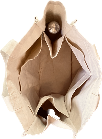 Questa shopping bag é realizzata in 100% cotone GOTS e al suo interno potete trovare sei tasche per poter inserire e dividere tutto ciò che volete: dalla frutta e verdura, alla vostra borraccia. Il suo design è ideale anche per una giornata in spiaggia, picnic, campeggio o anche andare in palestra.
